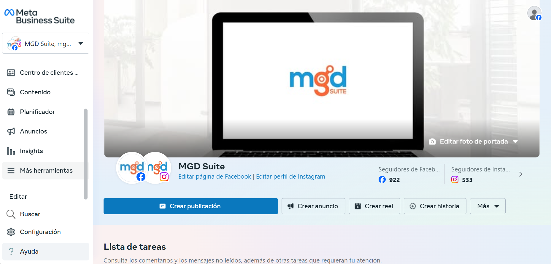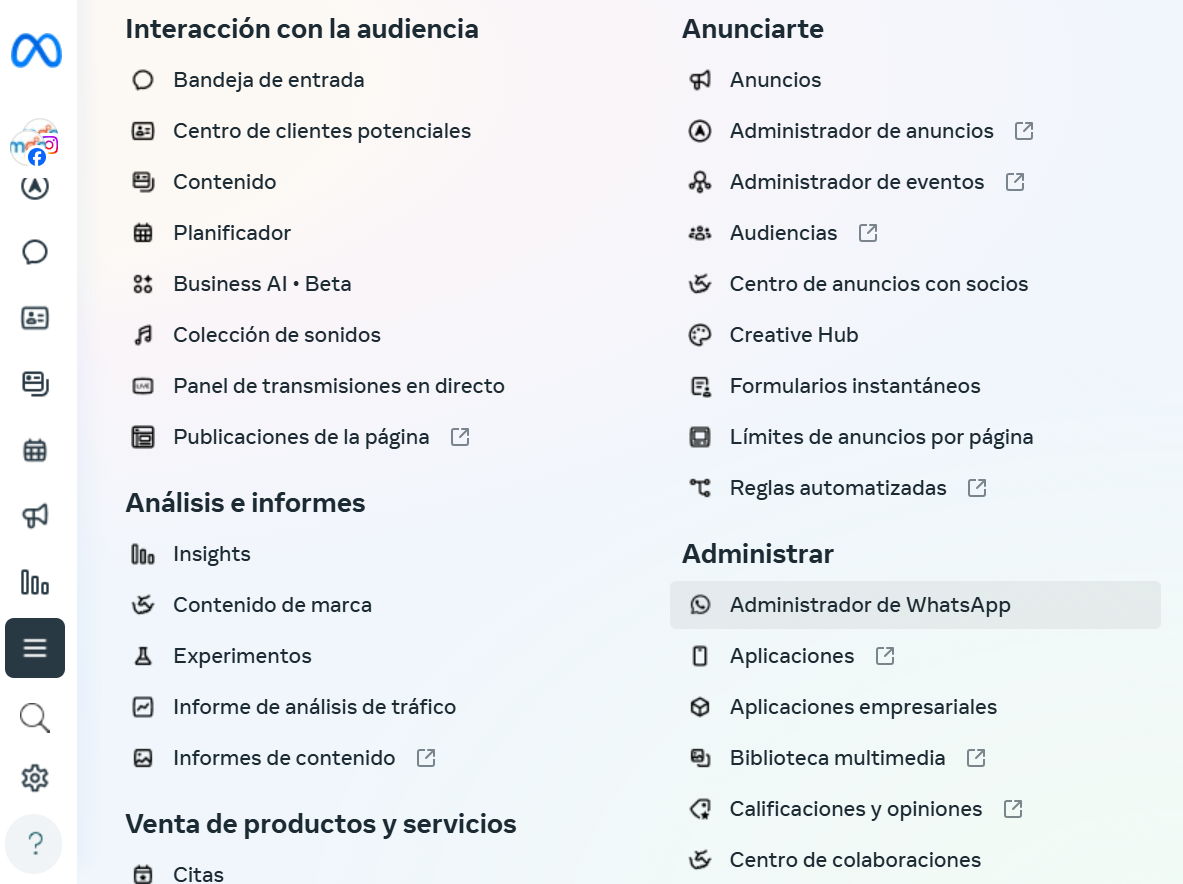 Dirígete al enlace de Meta Business Suite desde tu navegador. Esto te llevará al panel principal de administración.