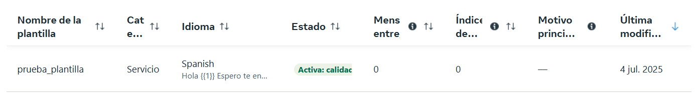 Cuando tu plantilla sea aprobada, aparecerá con el estado "Activa" en tu lista.